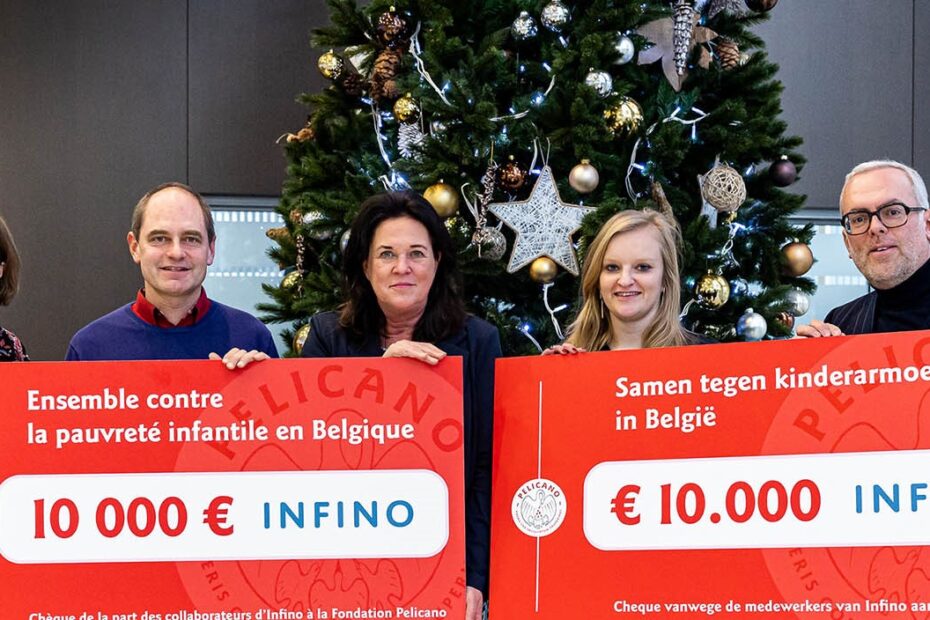 Stichting Pelicano kreeg een fantastisch kerstcadeau. Infino kinderbijslagfonds doneerde voor het derde jaar op rij 10.000 euro aan Stichting Pelicano. Infino vindt kinderarmoede een onrecht, want elk kind heeft recht op evenveel kansen. Gezien we nog een lange strijd voor de boeg hebben, mogen we opnieuw rekenen op de steun van het bedrijf. Per medewerker schenkt Infino 50 euro. Met dat geld kunnen wij kansarme kinderen voorzien van basisbehoeften, zoals een warme maaltijd, kledij, onderwijs, psycho-sociale ondersteuning, … En dat doen we tot een kind een plaats vindt in het werkveld en kan bijdragen aan de maatschappij. Een belangrijk duurzaam engagement, zodat we de vicieuze armoedecirkel kunnen doorbeken bij kwetsbare kinderen en ze échte toekomstkansen krijgen.