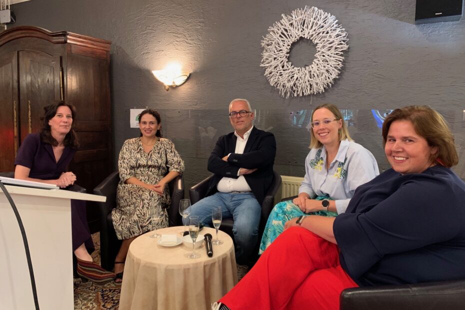 Fien Sabbe modereerde een paneldebat waarin de werking van KLEURRR werd voorgesteld en de actieve rol die Pelicano, haar zorgpartners en het sociaal huis Menen hierin spelen.